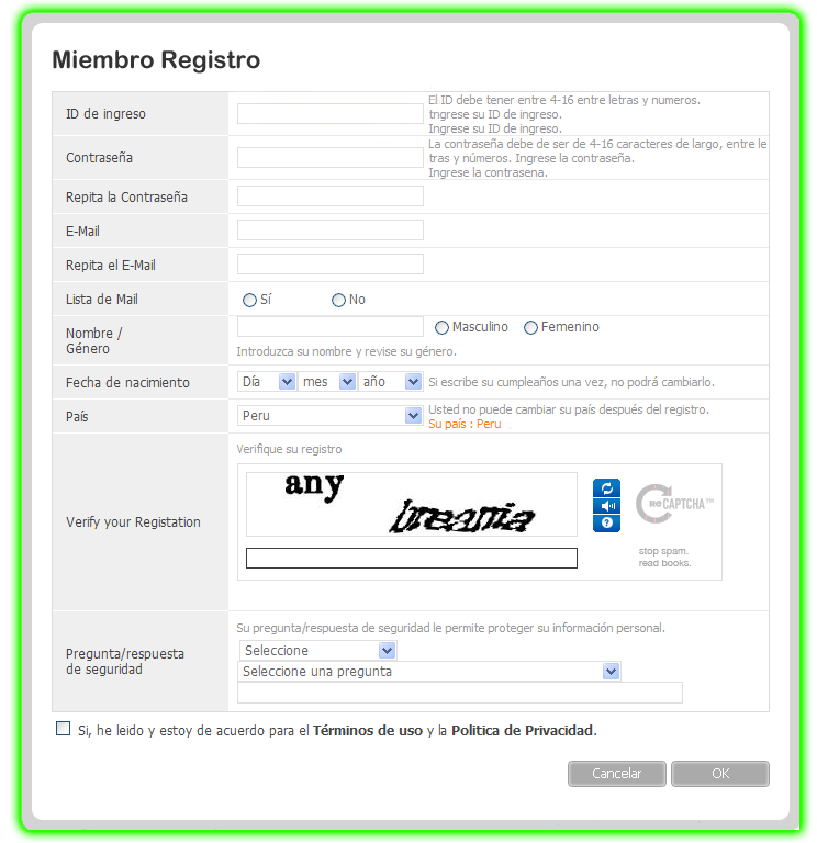 - El Correo Electronico debe ser Valido para que cuando Pierdas tu Pass puedes Recouperarlo con ese Correo.